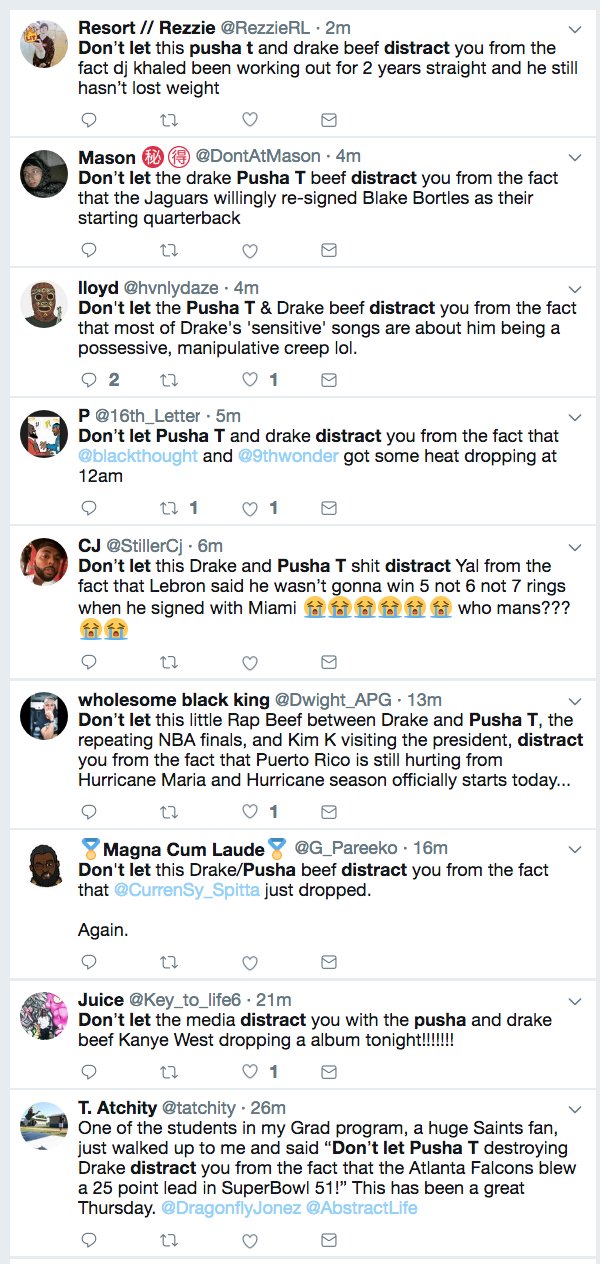 Chi Duly On Twitter Don T Let Pusha T Drake Distract You From The Fact That Somebody Tweets Dont Let Pusha T Drake Distract You Every 12 Seconds Https T Co Amhuugmvws Pm Law Limited