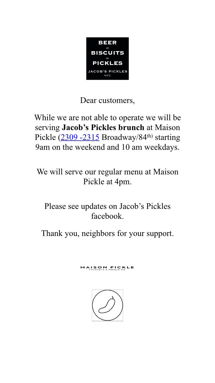 Made from scratch with locally sourced ingredients the food is unbeatable. Delivery pickup options 4255 reviews of jacobs pickles we had the good fortune to eat at jacobs during a soft open earlier this weekend. Thoughout history pickles have had a major role in food culture.